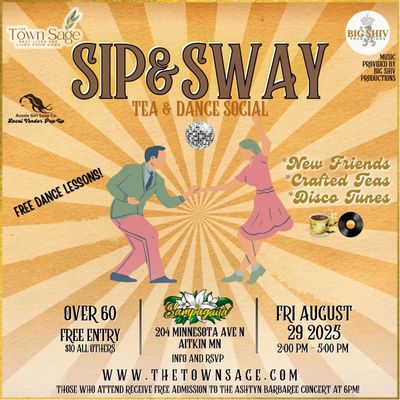 Meet new friends, sip crafted teas, and sway to the finest disco tunes by Big Shiv Productions. Free dance lessons, local vendor pop up and so much fun! Wear your disco shirts and skirts for a chance town free Town Sage services!